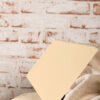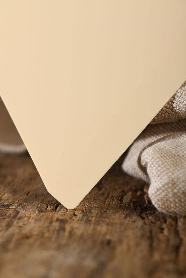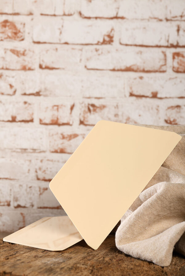 Diese Teigkarte ist trapezförmig, 12,5cm hoch und 21cm lang. Die lange Seite läuft nach unten hin dünner aus, sodass man den Teig leicht abstechen kann. Größe, Steifigkeit und Form machen diese Karte zum Lieblingswerkzeug, sobald der Teig auf der Arbeitsfläche liegt. Ab diesem Zeitpunkt lässt man jede andere Karte liegen.