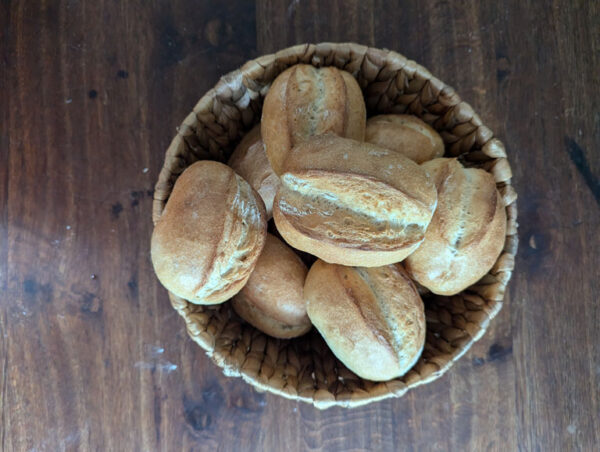 Ein helles Mehl, gut für direkte Teigführungen bis zur Übernachtgare. Sein Trumpf ist das flauschige Mundgefühl, das Teige auszeichnet, die nicht so stark abgebaut sind und nicht so viel Kleber enthalten. Für mich ist es das Handsemmel-Mehl! Kinder-Favorit! Super für gebackene Mäuse oder die weithin beliebten Streuseltaler.